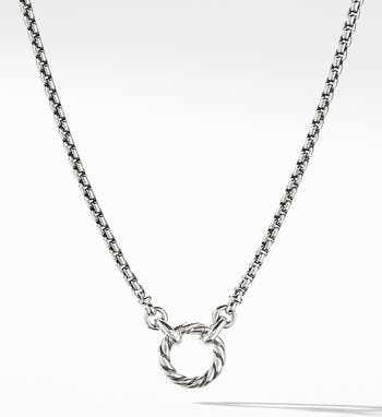 Sculpted from polished sterling silver, this refined box chain clasps a center amulet of the brand's iconic cable design.