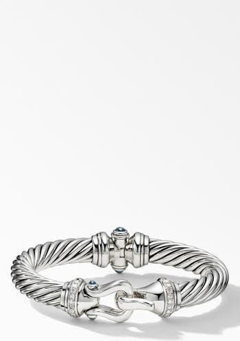 Bracelet, 9mm. Sterling silver/Hampton blue topaz. Pavé diamonds, 0.45 total carat weight. Imported.