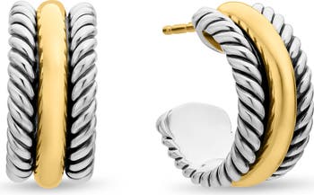 Sterling silver and 14-karat yellow gold. 16mm x 7mm. By David Yurman; made in the USA or imported.