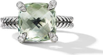 Ring, 11mm. Sterling silver/prasiolite. Pavé diamonds, 0.05 total ct. weight. Imported.