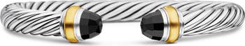 An ornately corkscrew-spiraled texture brings David Yurman's signature aesthetic to this sterling-silver cuff bracelet ringed with 14-karat yellow-gold accents. Semiprecious stones detailing the open tips add brilliant luster to your look.