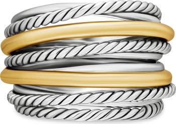 Sterling silver with 18-karat yellow gold. Ring, 18mm. Imported.