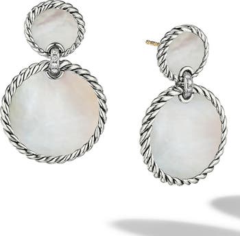 Sterling silver. Black onyx, Kingsman turquoise matrix or mother-of-pearl. 33mm drop; 21mm width. Pavé diamonds, 0.07 total carat weight. Earrings, 33mm. Imported.