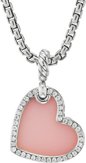 Sterling silver with pink opal and pavé diamonds. Total diamond weight: 0.27ct. Pendant, 18.7mm x 20.3mm. Chain sold separately. Imported.