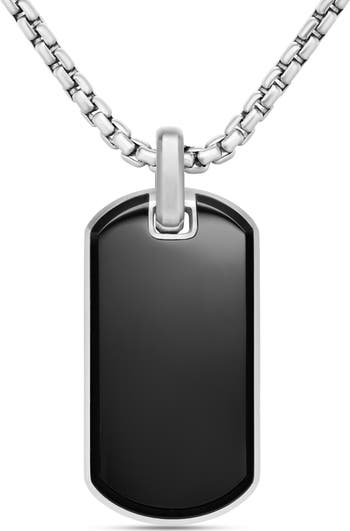 David Yurman skillfully reinterprets the classic chevron on this sculptural tag featuring oxidized and polished onyx at one side.