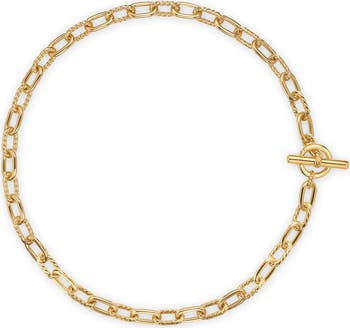 A toggle closure secures this signature chain necklace made of alternating sculpted cable and smooth links.