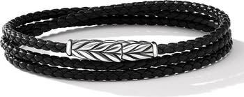 Braided leather echoes the cable-motif sterling silver clasp on this triple-wrap bracelet.