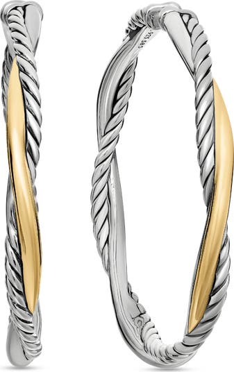 Sterling silver with 14-karat yellow gold. Earrings, 42 x 4mm. Imported.