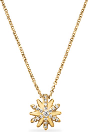 18-karat yellow gold. Pavé diamonds, 0.10 total carat weight. Total length, 18". Pendant, 10mm. Lobster clasp closure. Imported.