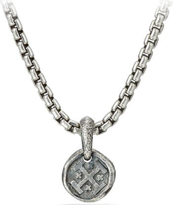 Sterling silver amulet, 10.5mm wide. Please note: Amulet only, chain sold separately. Imported.