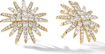 Starburst Stud Earrings in 18K Yellow Gold with Pavé Diamonds