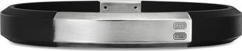 Sterling silver. Black rubber. Bracelet, 8mm. Slide clasp. Imported.