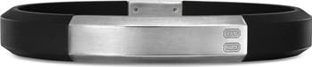 A sturdy sterling silver bar lends structure and refined shine to this flexible rubber bracelet that makes a great addition to any wrist stack.