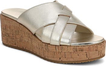 Exclusive alignment technology and a VIO MOTION footbed work together to provide shock-absorbing cushioning and stability in this strappy leather sandal boosted by a cork platform.