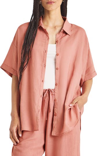 Ease into whatever's on the day's agenda in a cool and breezy linen-and-lyocell shirt framed by cuffed elbow-length sleeves.