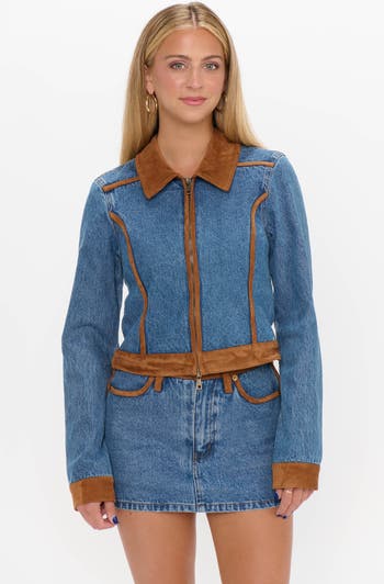 The coolest denim jacket in any room, the Dawson is trimmed in brown faux suede and features multiple pockets for style and function. A must-have staple for every capsule wardrobe, it pairs perfectly with boots and the matching Dawson Skort!