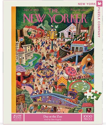 Bring the charm of a day at the Central Park Zoo into your home with Day at the Zoo, a lively 1000-piece puzzle that showcases a classic New Yorker cover by artist Tibor Gergely, originally published on July 29, 1944. This delightful scene captures children dashing through the zoo, petting, sliding, and feeding friendly animals, while the animals happily soak up the attention. Perfect for holiday gifting, this puzzle is sure to enchant anyone who loves both classic art and playful scenes from city life.\r\n\r\nThe New Yorker covers have captured the wit, style, and vibrancy of modern life for nearly a century, and this cover by Gergely is no exception. Whether whimsical, thought-provoking, or laugh-out-loud funny, these iconic covers continue to delight readers and collectors alike.