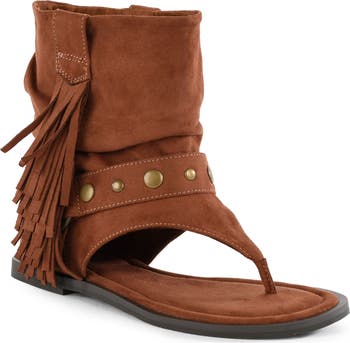 Polished studs and fringe trim put a cowboy-chic spin on this breezy outfit-making sandal.