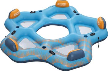 DAY DRIFTER ISLAND - 9'10" X 9'5" - Drift the day away in style with the Hydro Force Day Drifter Island! Perfect for groups of up to 5 people with an overall weight capacity of 1102 lbs, this star-shaped island features 5 backrests so you and your crew can lean back and relax on the water. The Day Drifter Island comes with 5 built-in cup holders to keep snacks and drinks close by. With cooling mesh seats and an opening to dip your feet into the water, this island makes floating in the sun cooler than ever. The Day Drifter is constructed with durable Inflata-Shield material to better resist puncture and limit stretching, which allows for better stability and air retention. The 2 built-in Clasp 'N Go buckles easily connect multiple islands (or compatible tubes) together. Plus, the 5 heavy-duty carry handles make getting in and out of the island simple. And it makes transporting this floating island from the car to the beach or lake a breeze! Add some comfort and relaxation to your water-filled adventures with the Hydro Force Day Drifter Island. Perfect for up to 5 adults with an overall weight capacity of 1102 lbs. Inflated Size: 9 ft. 2 in. x 8 ft. 10 in. x 17 in. Inflata-Shield material resists puncture with increased tensile strength that limits stretching for improved stability and air retention. 2 Clasp 'N Go connectable buckles can connect 2 islands together. 5 cup holders to keep drinks and snacks close by. Premium construction with 5 backrests. 5 seats with cooling mesh bottoms. Open center area to dip feet into the water. 5 heavy-duty carry handles to get in and out of the island and for transport. Color Shield protective layer prevents color printing from transferring onto skin when wet and keeps colors bright.