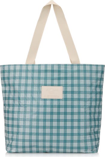 This vibrantly checkered tote made from a durable, lightweight Tyvek material is perfect for daytripping to the beach, pool or just around town thanks to its water-resistant exterior that keeps your inside items safe from splashes. Zip pockets inside and out keep smaller items secure, while the sturdy webbed straps allow you to comfortably carry by hand, in the crook of your arm or on your shoulder.
