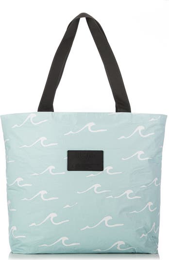 A tropical-inspired wave pattern enlivens a tote made from a durable, lightweight Tyvek material that's perfect for daytripping to the beach, pool or just around town thanks to its water-resistant exterior which keeps your inside items safe from splashes. Zip pockets inside and out keep smaller items secure, while the sturdy webbed straps allow you to comfortably carry by hand, in the crook of your arm or on your shoulder.