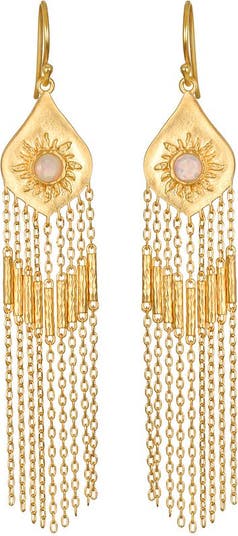 Each new day offers an opportunity to heal under the generous warmth of the sun, symbol of vitality and leadership. Accented with luminous opal, stone of healing and balance, golden sun fringe earrings shine with the promise of personal power. Wear the sun to remind you to shine your light and to awaken feelings of self-love.