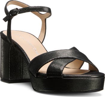 A chunky platform and wrapped block heel bring dancefloor-worthy height to a Spanish-made sandal featuring a lustrous metallic upper and secured with an adjustable buckle closure.
