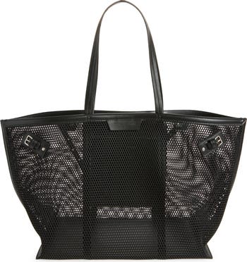 Belted gussets enhance the slouchy ease of this generously sized tote that's crafted from airy, semisheer mesh.