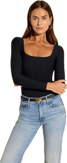 We’ve transformed our bestselling and universally flattering square-neck swimsuit into a light-sculpting bodysuit top offering tummy control and chest lift. The full-bottom design and not-too-skimpy cut allow for all-day wear and won’t ride up.