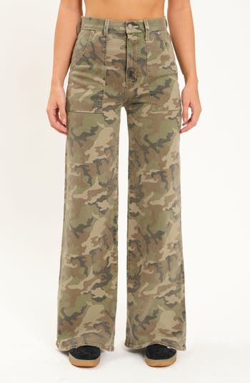 Give in to your style nostalgia and throw it back to Y2K in a pair of wide-leg jeans cut from low-stretch denim patterned in classic camo.