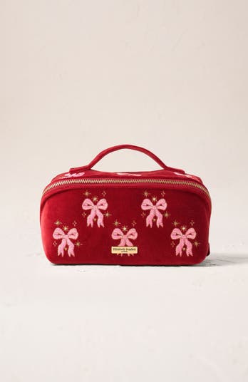 Designed to lay flat on any surface, this bag is an organisational must-have. Complete with a zip-around closure, handy compartments, and a wipeable lining, these bags are designed to elevate your everyday routine. No need for wrapping: this sweet design comes already tied with an embroidered bow.