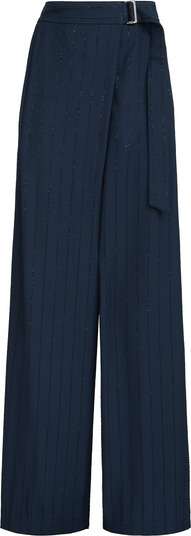 - Adjustable belt and backing button closureVertical front pocketsPleatBack welt pocketsPlain hemNickel-free monili decoration