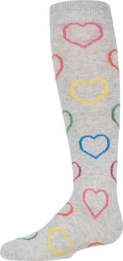 Let your heart say yes to our Dazzling Hearts Knee High Socks. Colorful hearts shimmer all over these socks with metallic yarn threaded in for that glam effect. Made from a super cozy cotton blend, these knee-high socks provide all day comfort and breathability.
