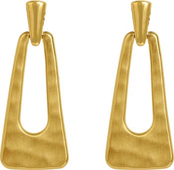 Sculptural silhouettes get elevated with a textural finish and hinged movement in these handcrafted drop earrings plated in 22-karat gold.