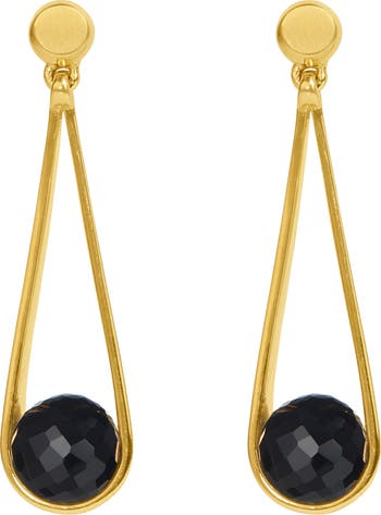 Designed with a sleek open teardrop plated in brushed 22-karat gold, these lustrous earrings with dreamy checkered-cut stones demand a second look.