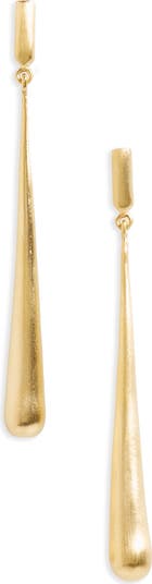 Elongated teardrops flatter every face shape and gently sway as you move in these minimalist earrings plated with brushed precious metal.