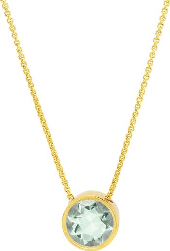 This pendant necklace packs a lot of shine in a small package with a brilliant-cut quartz in a pastel hue suspended on a 22-karat gold-plated box chain.