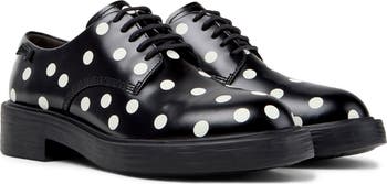 An XL EXTRALIGHT® EVA sole and OrthoLite® insole bring modern comfort to this leather derby covered in polka dots for a little extra pep in your step.
