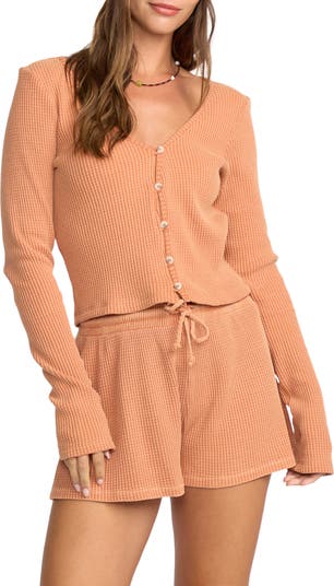 Supersoft thermal cotton keeps you comfy and cozy in drawstring waist shorts that are perfect for late mornings spent sipping coffee on the couch.