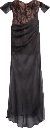 Be the belle of the ball in a corset-styled gown crafted with a moire satin skirt and poufed with a tulle underlayer.