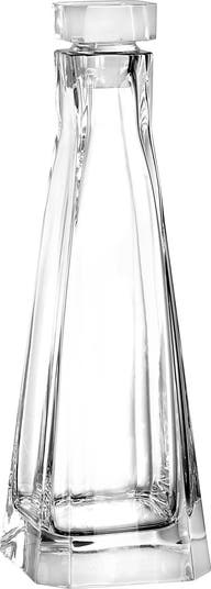 This elegant decanter is a refined addition to both classic and modern homes. Its linear body tapers into a small mouth with a matching topper, both handcrafted from mouth-blown crystal. Ideal for display on a bar cabinet, dining table, or sideboard, it complements glassware from the same series while serving as a functional and decorative centerpiece