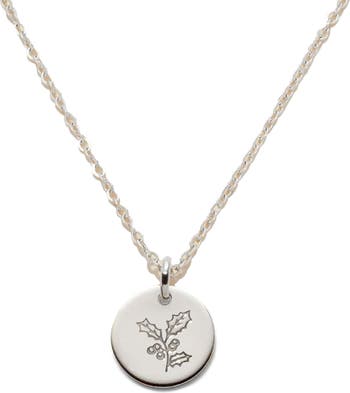 Life is tough; but so are you. No matter where you go, carry this symbol of strength close to your heart. This delicate disc is customized with a hand-drawn holly stamp. Delivered from the Made by Mary studio in a giftable book-style box, each piece is carefully crafted with your story in mind. Please note that Birth Flower stamp designs vary slightly depending on disc size. Find your fit: • Small — 1/4" • Medium — 3/8" • Large — 1/2"