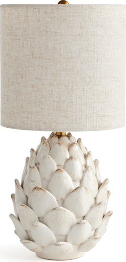 This stunning artichoke-inspired ceramic lamp is hand finished with antiqued edges. Topped with a natural linen shade, it makes a beautiful addition to the traditional space.