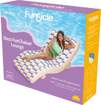LOUNGE: DECO FUNCHAISER - 68" - The Funsicle FunChaiser Lounge is where you want to be this summer. This durable, inflatable lounge can be used in and out the pool for the comfiest seat around. With cushioned arched seating to support your back and extended length to support your legs, it is designed for irresistible full body relaxation. As you float gently along the water, enjoy staying completely dry while sipping a drink from the handy cup holder. With the 2-in-1 air valve, this pool float is easy to inflate and deflate. Sprawl out happily on the Funsicle FunChaiser Lounge and soak up the sunshine. Inflatable water lounge for pools, beaches & lakes. Extra lumbar support for a comfortable ride. Floats above the water to keep you dry. Handy drink holder.