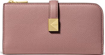 Logo-embellished hardware shines on an essential wallet shaped from richly pebbled leather.