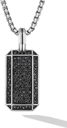 Instantly refresh your favorite chain with this sterling silver tag pendant filled with rich black diamonds.