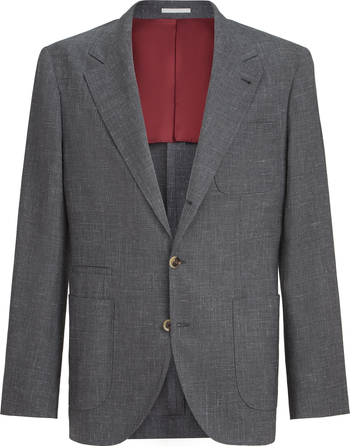 The lightweight wool, silk and linen fabric combines the natural properties of different yarns, resulting in a crisp, glossy material with a compact texture enriched by a characteristic slubbed appearance that creates irregular color effects. The cupro lining provides added comfort.