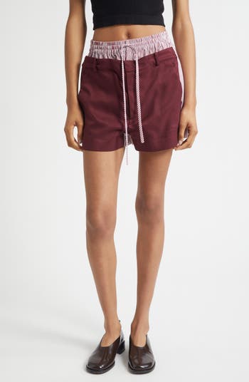 Inspired by hotel staycation style, these runway-showcased shorts from the fall '25 collection play up the pajama theme with striped boxers playfully peeking through solid cotton-twill panels.