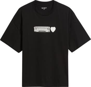 Boxy and midweight, this organic-cotton T-shirt has a retro graphic on the front that brings signature hard-working energy to your day.