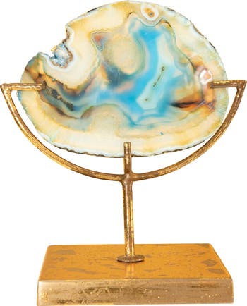 - This boho-inspired decorative accent features a slice of genuine agate dyed in a bold, swirling indigo atop a glamorous metal stand